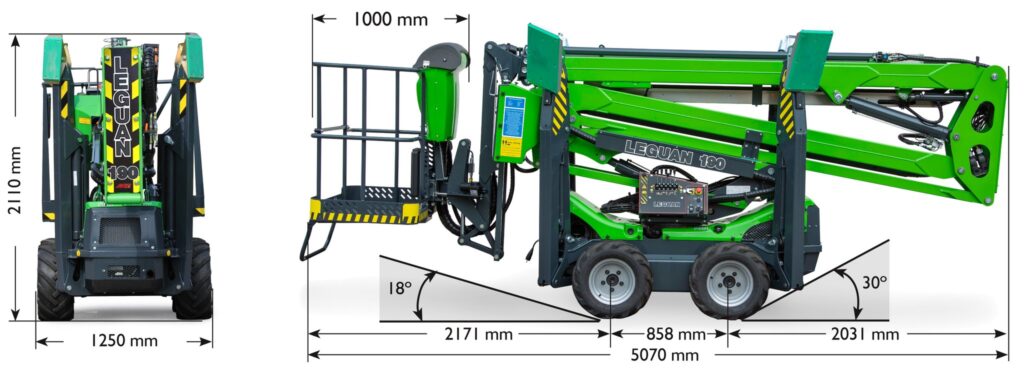 Multifunctionele hoogtewerker om te gebruiken bij allerlei bouwwerken, schilderwerken, plaatsingen van zonnepanelen, boomverzorging etc